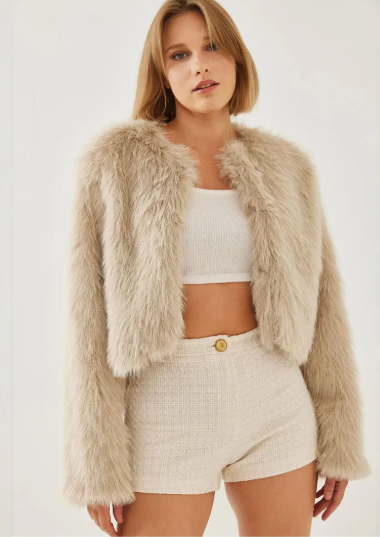 LUCCI boxy cropped faux fur coat, perfect for a cozy and stylish statement look.