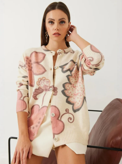 LUCCI textured flowering knitwear cardigan with buttons, perfect for cozy and stylish layering.