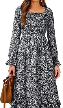 An elegant long-sleeve maxi dress featuring a flattering neckline, smocked elastic waist, and tiered ruffle hem — perfect for effortless everyday style or special occasions.