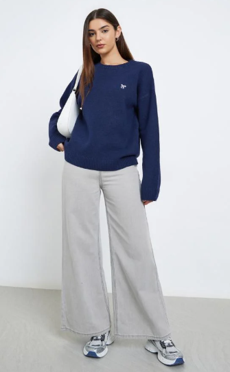 Stay warm and stylish with the Styli Navy Blue Regular Fit Knitted Sweater. Crafted from soft, comfortable knit fabric, this sweater offers a relaxed regular fit that drapes effortlessly for all-day comfort. The classic navy blue color makes it versatile and easy to pair with jeans, trousers, or skirts.